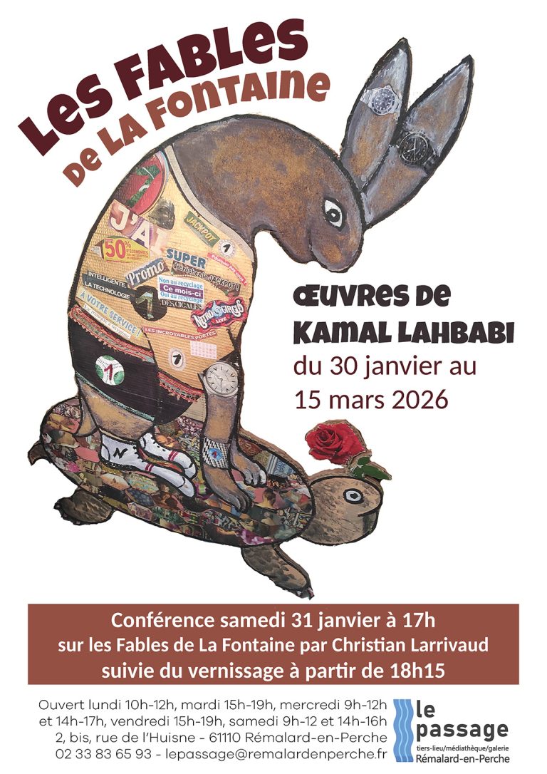 Des plus célèbres au moins connues, l’artiste désormais installé à Rémalard-en-Perche revisite les aventures du lièvre, de la tortue, de la cigogne… Et nous invite à une relecture.